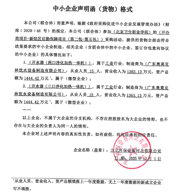 | 方立环保设备河北有限公司 | 开水器(三口净化加热一体机) | 90L、AL-2BJ-9 | 30 | 0.836万元 | 25.08万元 | 开水器(三口净化加热一体机) |