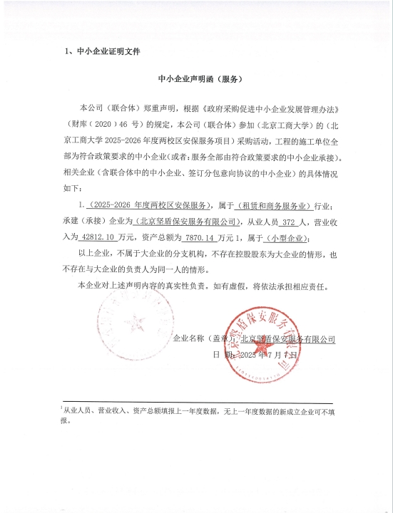 二、项目名称:北京工商大学2025-2026年度两校区安保服务项目