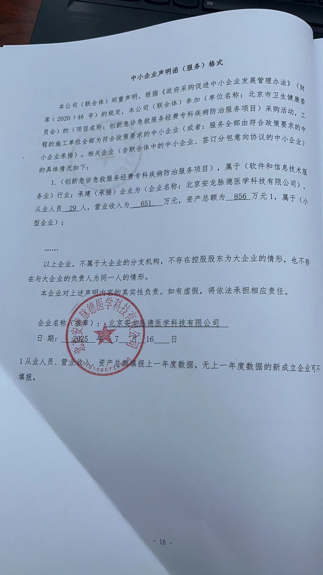 中标成交供应商名称:北京安龙脉德医学科技有限公司