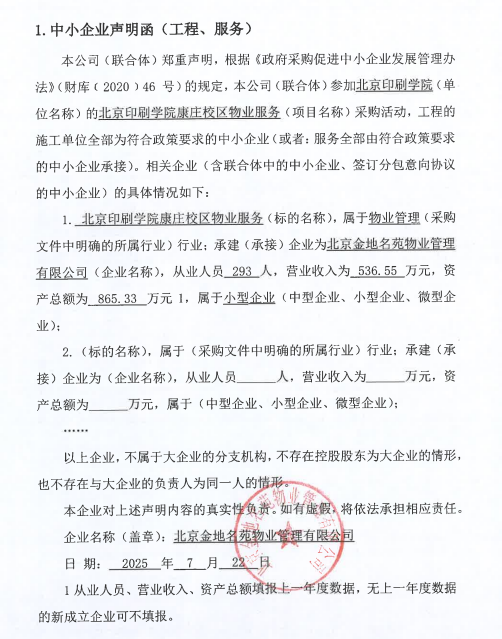 | 北京金地名苑物业管理有限公司 | 1 | 472.074504万元 | 472.074504万元 | 具体详见所附招标文件 |