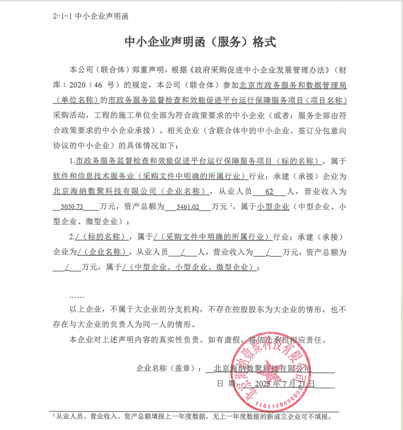 | 北京海纳数聚科技有限公司 | 1 | 241.8万元 | 241.8万元 | 服务期限:自合同签订日起一年。 |
