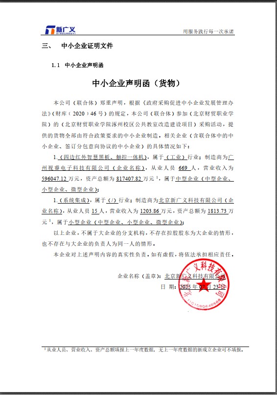 | 北京新广义科技有限公司 | 触控一体机等 | 定制 | 1 | 111.85万元 | 111.85万元 | 详见采购文件 |