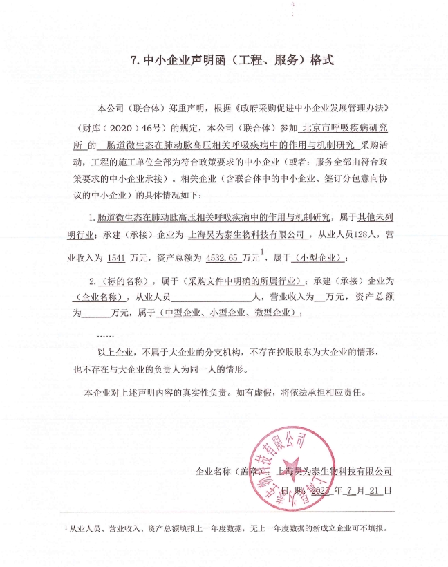 | 上海昊为泰生物科技有限公司 | 1 | 20.4万元 | 20.4万元 | 按采购人要求 |