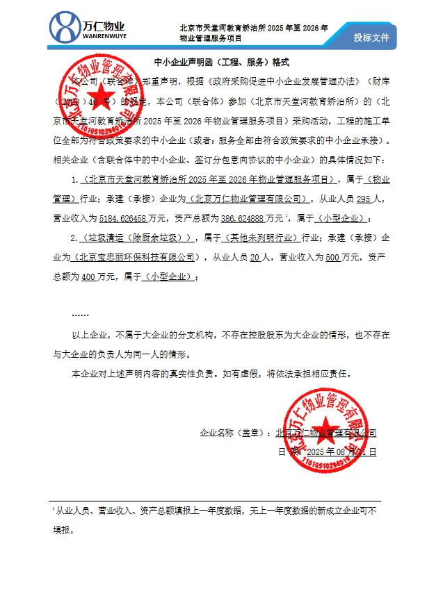 | 北京万仁物业管理有限公司 | 1 | 183.12万元 | 183.12万元 | 详见采购文件 |