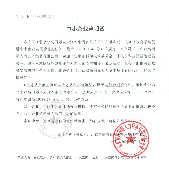 | 北京双高国际人力资本集团有限公司 | 1 | 47.9万元 | 47.9万元 | 满足采购文件要求 |
