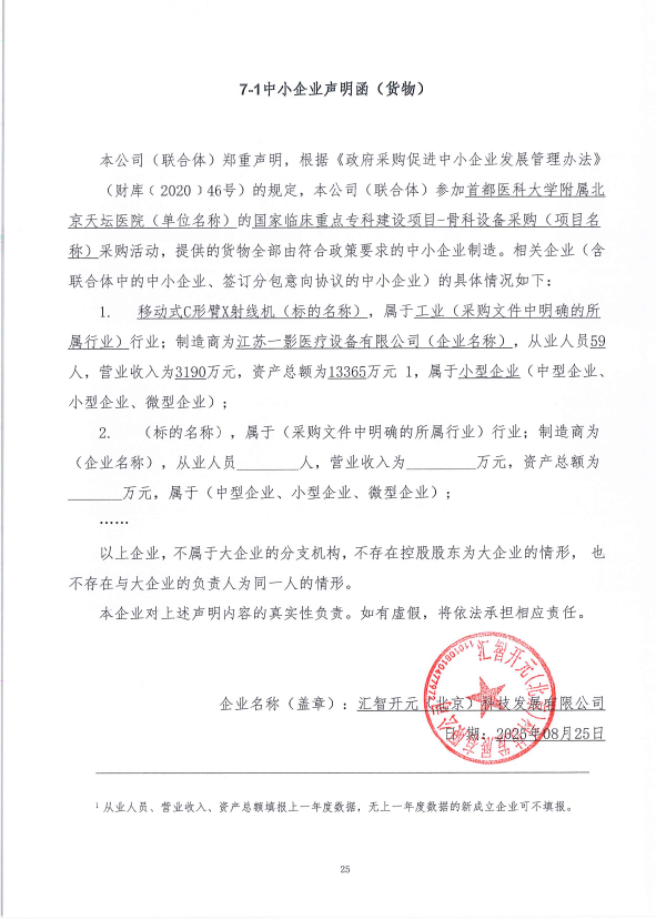 | 汇智开元(北京)科技发展有限公司 | 移动式C形臂X射线机 | Surgio-B51s-MC | 1 | 269万元 | 269万元 | 按采购人要求 |