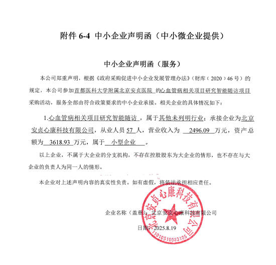 | 北京安贞心康科技有限公司 | 1 | 199.914万元 | 199.914万元 | 详见招标文件第三章采购需求 |