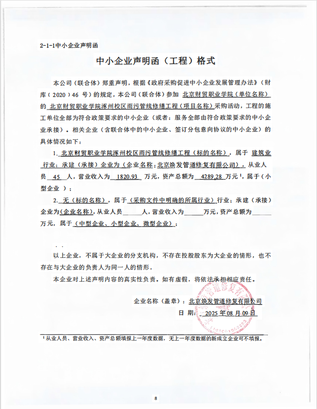 二、项目名称:北京财贸职业学院涿州校区雨污管线修缮工程项目