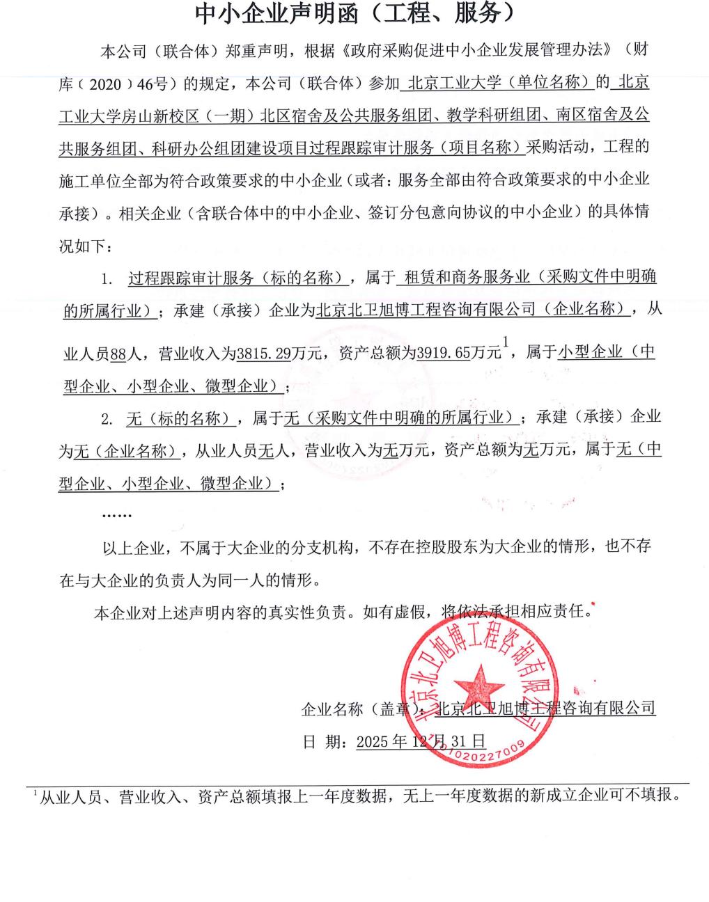 二、项目名称:北京工业大学房山新校区(一期)北区宿舍及公共服务组团、教学科研组团、南区宿舍及公共服务组团、科研办公组团建设项目过程跟踪审计服务
