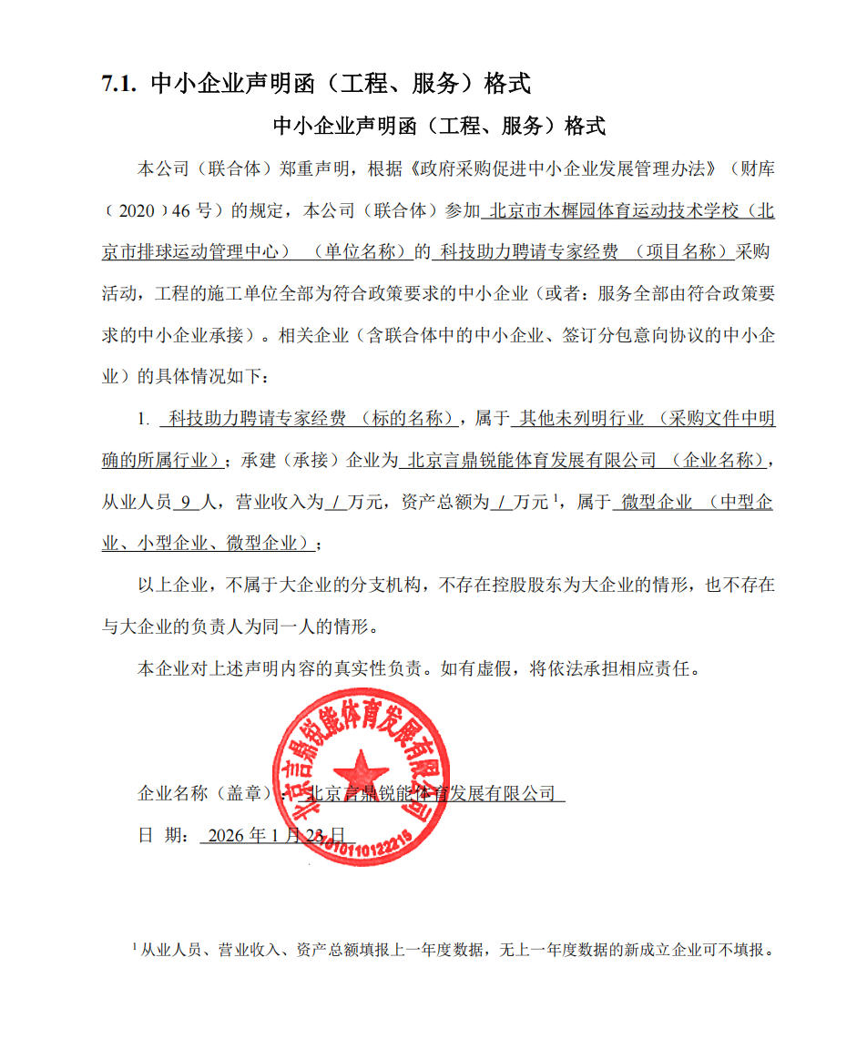 中标成交供应商名称:北京言鼎锐能体育发展有限公司
