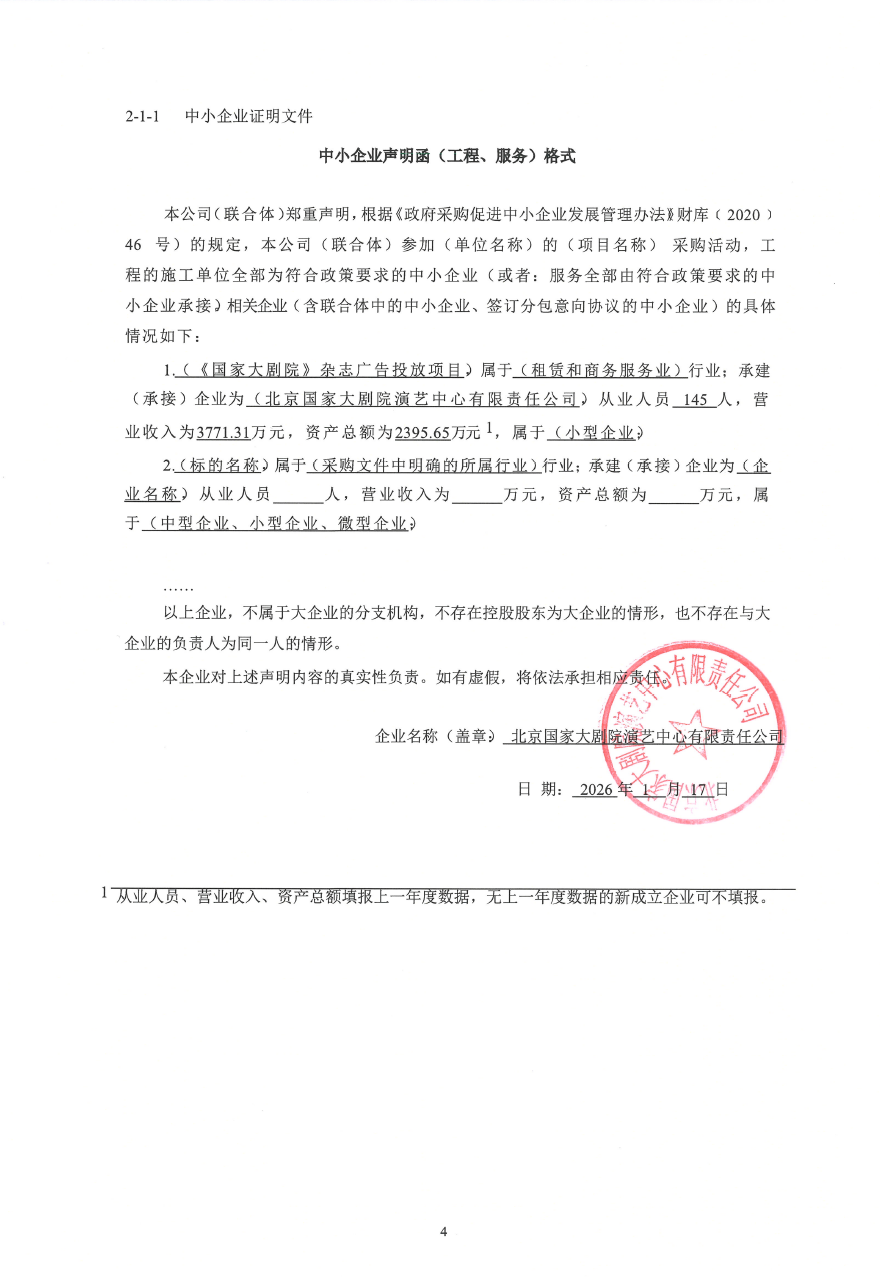 采购需求:《国家大剧院》杂志广告投放。