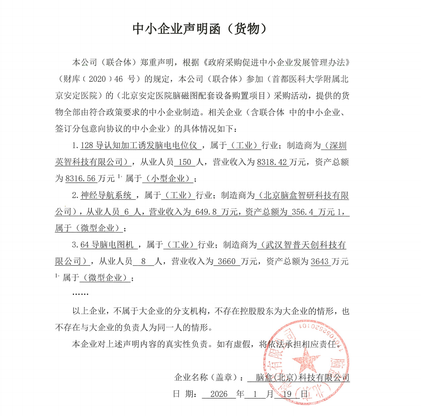 | 脑盒(北京)科技有限公司 | 64导脑电图机 | SNS | 1 | 57.9万元 | 57.9万元 | 连续或分段采集,支持同一套软件同时采集≥8个人。 |