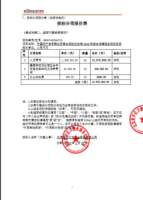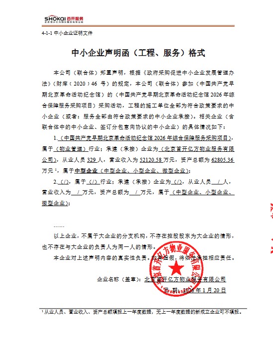 二、项目名称:中国共产党早期北京革命活动纪念馆2026年综合保障服务采购项目