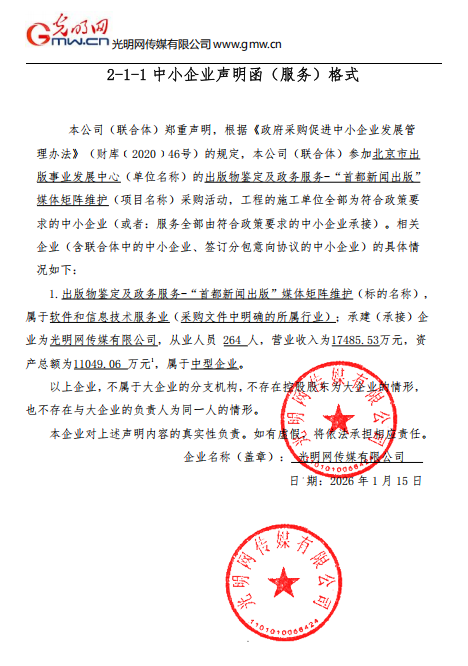 | 光明网传媒有限公司 | 北京市东城区珠市口东大街5号二层西侧 | 9111010155140735X8 | 88.35 万元 | 评审总得分(综合评分法): 90.42 分 |