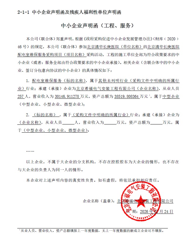 | 北京希福电气安装工程有限公司 | 1 | 114.877万元 | 114.877万元 | 详见招标文件 |