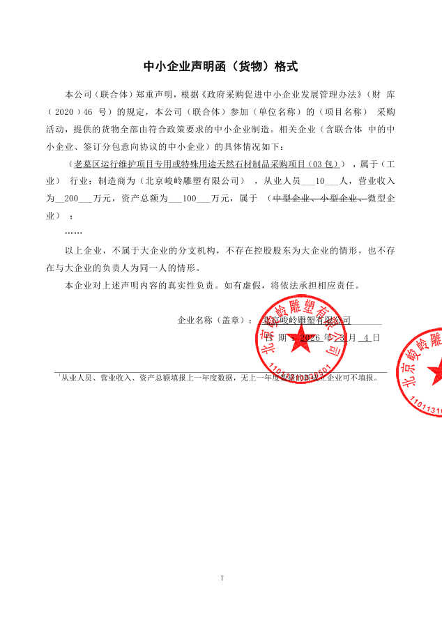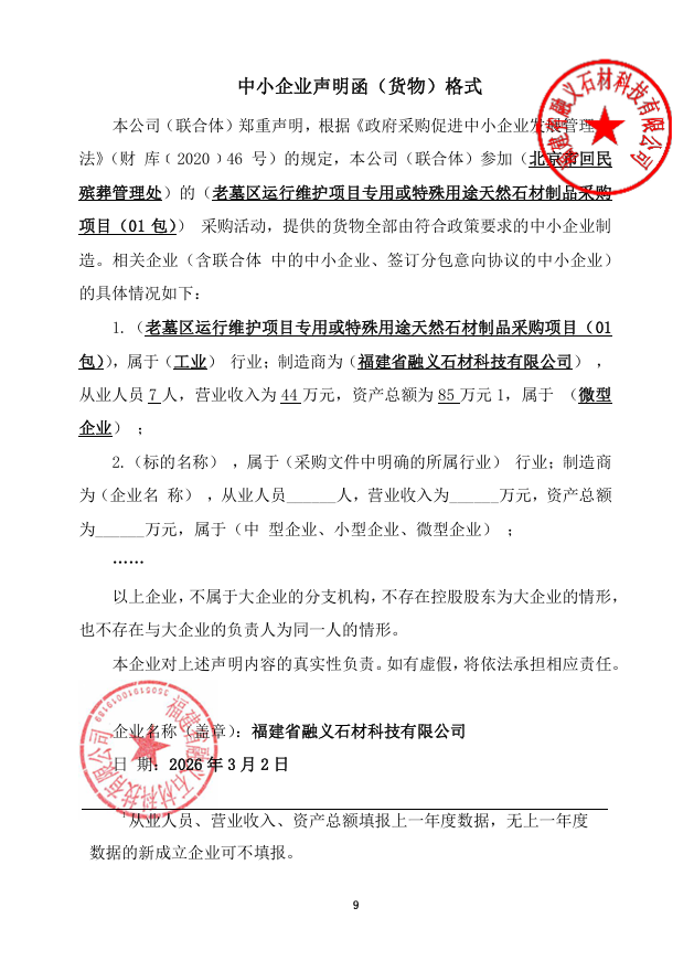 二、项目名称:老墓区运行维护项目专用或特殊用途天然石材制品采购项目