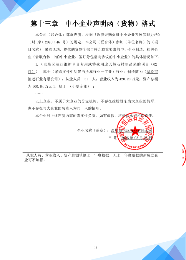 中标成交供应商名称:温岭市恒远石业有限公司