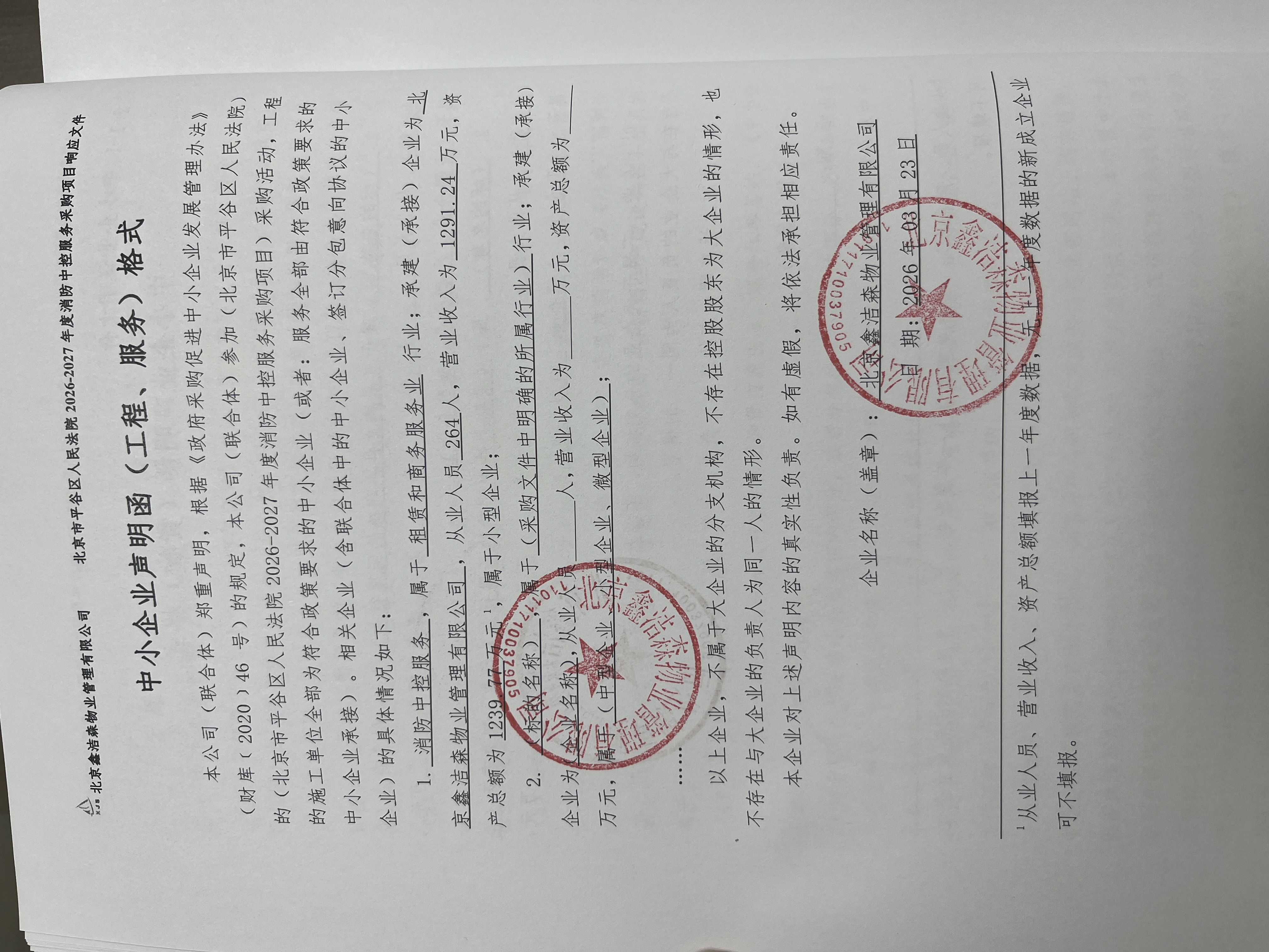 二、项目名称:北京市平谷区人民法院2026-2027年度消防中控服务采购项目